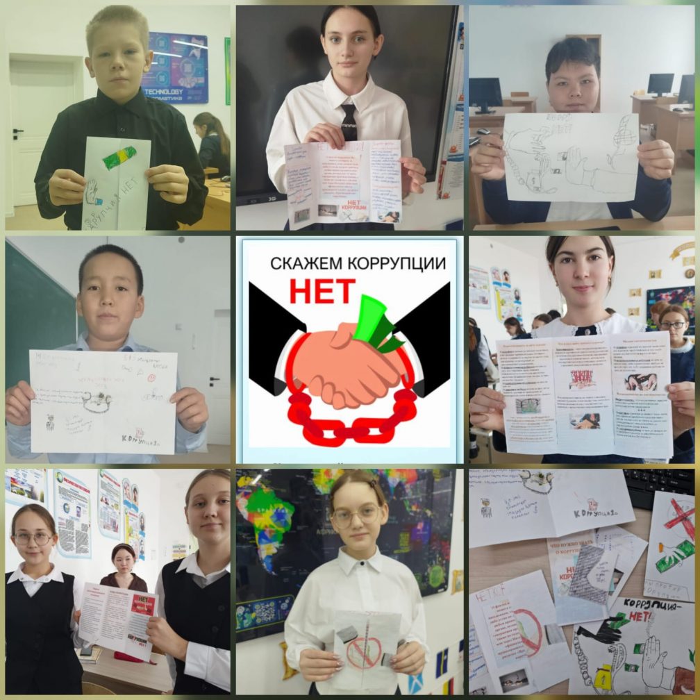 12 қараша күні «Адал азамат» тәрбие бағдарламасы аясындағы іс-шаралар жоспарына сәйкес Шуйский ауылының жалпы білім беретін мектебінің 7 және 8-сынып оқушылары «Таза қол — таза ар» тақырыбында сыбайлас жемқорлықтың алдын алу бойынша ақпараттық буклеттер дайындады.