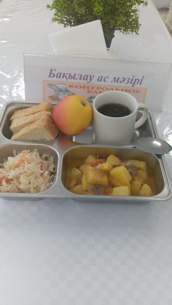 Бақылау ас мәзірі Үйдегідей дайындалған қуырдақ Көкөніс салаты Итмұрын қосылған шайы Қара бидай наны Алма