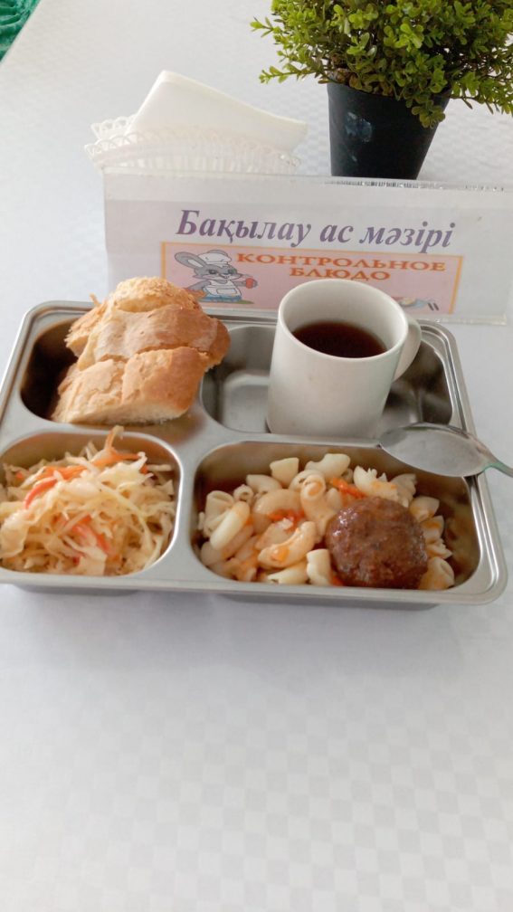 Бақылау ас мәзірі Пісірілген макарон Буға пісірілген тефтели Негізгі қызыл тұздық Көкөніс салаты Тәтті шай Қара бидай наны