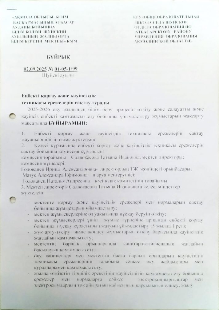 КГУ "Общеобразовательная школа села Шуйское отдела образования по Атбасарскому району управления образования Акмолинской области"