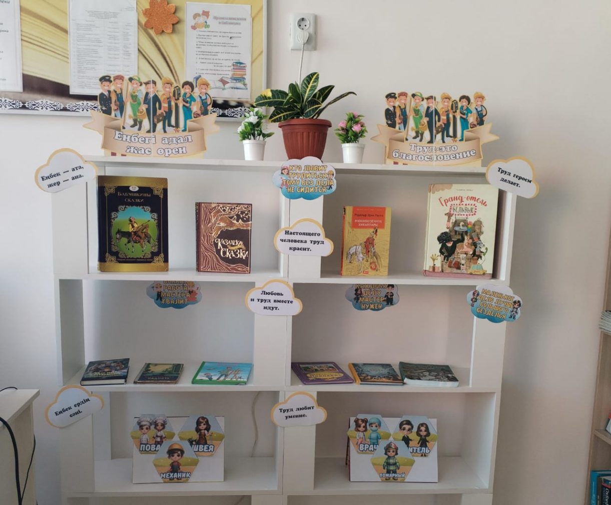 Еңбек күні қарсаңында біздің кітапханада "Еңбек - өмірдің батасы" атты кітап көрмесі ұйымдастырылды. Онда орыс және шетелдік жазушылардың мамандықтар, шеберлік, адал еңбек және оның әр адамның өміріндегі маңызы туралы шығармалары ұсынылған.