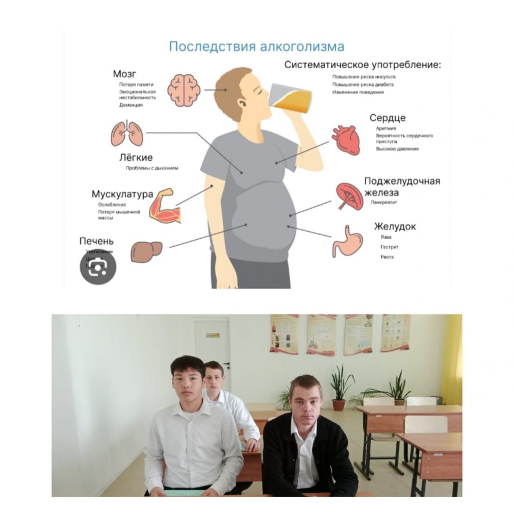 Шуйский ауылының ЖББ мектебінде «Алкоголь және оның әлеуметтік салдары» тақырыбында сынып сағаты өткізілді.