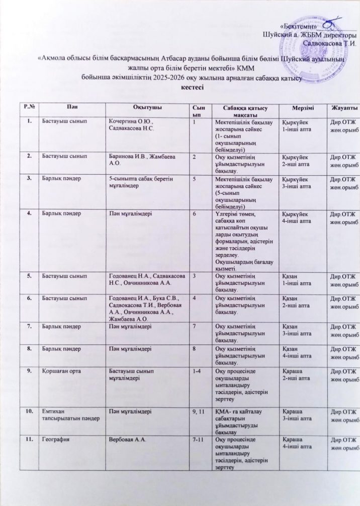 "Ақмола облысы білім басқармасының Атбасар ауданы бойынша білім бөлімі Шуйский ауылының жалпы орта білім беретін мектебі"КММ